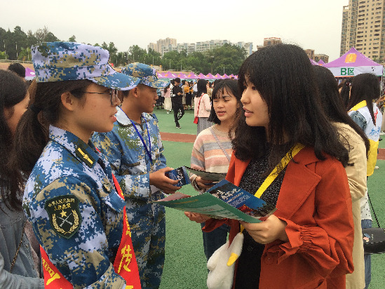 记者在现场看到,前来咨询参军的学生真不少,其中还有不少女大学生,对参军的热情很高。岭南师范学院学院体育科学学院体育教育专业的大四学生蔡开勇,此次不仅是踊跃参军的报名者,还穿上了迷彩服,在现场帮忙发放宣传手册等。“这是我第四次报名参军了,从进入大学参加军训的那一刻起,我就非常渴望能够入伍锻炼。保家卫国是每一名热血青年的应尽义务,作为大学生更是责无旁贷。我希望能够到西藏,到最偏远的地方去,接受部队的锻炼。”蔡开勇坦言,自己是家中的长子和唯一的大学生,一开始家人并不同意,后来家人终于接受了,蔡开勇也在不断地调整自身,提高身体素质和知识水平,希望顺利通过体检等各项考核,成为一名军人,为祖国和平稳定奉献自己的力量。