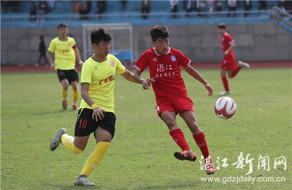 由广东省足球协会、省足球运动中心主办的2018—2019广东省足协超级联赛又燃“战火”,3月16日下午,湛江英杰队在霞山体育场举行的比赛中(如图,记者 李忠 摄),以2:1战胜广东恒上队。