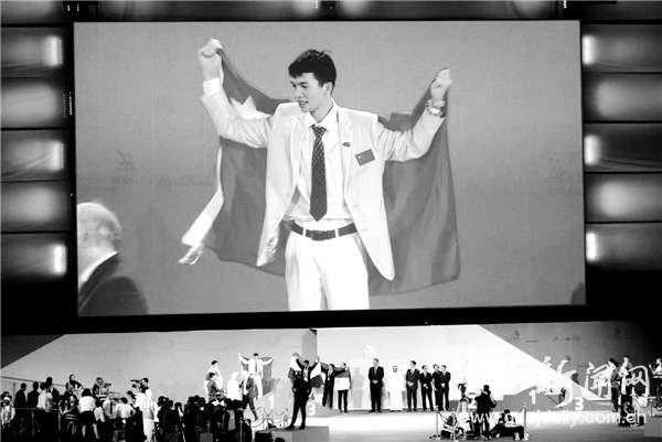 据悉,广州市建筑工程职业学校实习指导教师梁智滨是吴川兰石镇蒲袍村人,1998年出生。2016年他获得中国技能大赛第二名;2017年10月在阿联酋阿布扎比举行的第44届世界技能大赛中,代表中国出战的梁智滨荣获砌筑项目比赛第一名,为中国代表团夺得首枚金牌(如上图,受访者供图)。世界技能大赛是最高层级的世界技能赛事,被誉为“世界技能奥林匹克”,其竞技水平代表了各领域职业技能发展的世界水平。在世界竞技赛场上,梁智滨自信满满地在22小时的比赛时间内,冷静思考、沉着应战,按照大赛规则以零误差的高水平发挥,出色地完成砌筑项目三个模块的比赛任务,最终以总分第一登顶世界冠军,在世界技能舞台上展现了大国工匠精神,为国争光。他还荣获“广州市技术创新能手”称号,为央视2017年“三农人物”获得者。