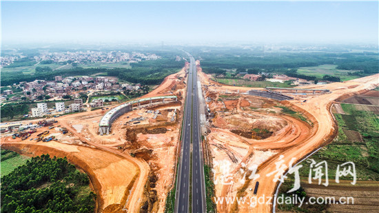 17日,广东玉湛高速竹园互通雏形初现。 记者 张锋锋 航拍