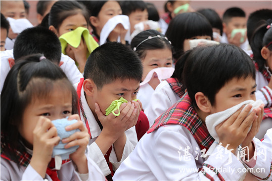 当天,市二小等学校的学生们正在上课,突然警报声响起,模拟地震火灾的疏散应急逃生演练也随即开始。在老师们的指挥下,学生们用毛巾等捂着口鼻,有序地从教学楼里跑向操场集合。同时,学校还邀请多名交警到校内开展交通安全教育讲座。