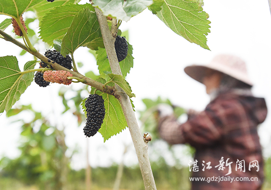 “今年的桑葚较去年甜!销路不愁更开心!”遂溪县河头镇上坡村的240多亩桑葚扶贫基地里,好几位贫困户站在齐人高的桑树林里忙着采摘肥硕黝黑的桑葚(如图,记者 刘冀城 摄)。单是桑葚种植这一项,预计今年上坡村42户贫困户每户可增收2300多元。