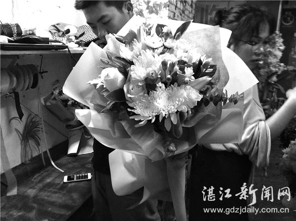 昨日,记者在霞山区观海长廊附近一家花店见到来取花的凌女士,她在店里预定了3束做清明的鲜花,每束75元。一束是白梅、蓝绣球和白菊花的“蓝白配”,素雅大方,是给先母的;一束以白色紫罗兰和香水兰为主,加上白、黄两色的菊花和几枝小雏菊,是给奶奶的;一束是白梅、菊花和百合,是给伯母的。凌女士说,因为伯母生前喜欢百合,所以每年清明都带百合拜祭。