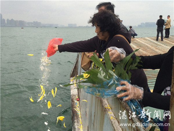 4月2日,在我市附近海域,市民们将先人的骨灰撒向大海。 记者 林石湛 摄