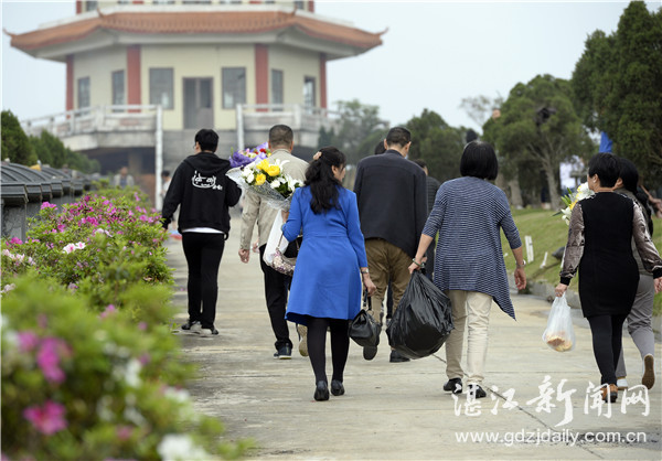 连日来,一波又一波的市民手捧鲜花前往湛江狮子岭陵园扫墓祭拜。