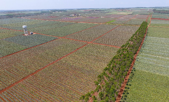 3月28日在广东农垦徐闻海鸥农场拍摄的以菠萝为主的多种作物农田(无人机拍摄)。
