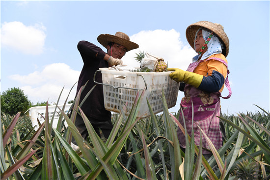近日,广东省湛江市徐闻县的菠萝种植农场迎来今年的首批采摘。徐闻县是菠萝生产大县,种植面积约30万亩,被称为“菠萝的海”。