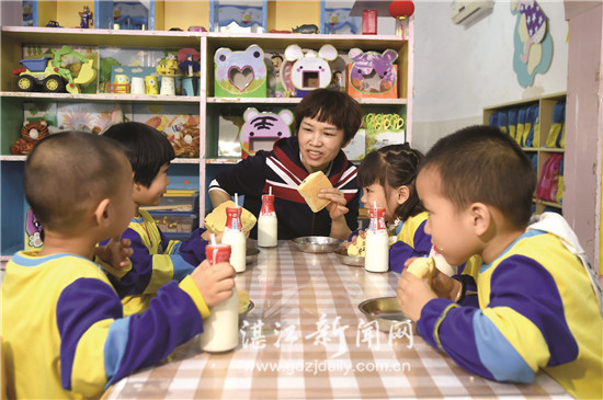 正值早餐时间,记者看到,幼儿园的老师正带领小班的孩子们一同洗手吃早餐,在老师们的陪餐和指导下,活泼可爱的孩子们开心地吃着蛋糕和牛奶。“我们幼儿园的行政人员、保健医生和老师经常和孩子一起共餐,陪餐不仅能及时了解饭菜孩子是否喜欢,及时调整带量食谱,让厨房师傅制作出色香味俱全的菜肴,还可以起着文明进餐礼仪的示范作用。”湛江市第四幼儿园园长李凤英说,学校会根据孩子的饮食习惯和身体状况,按照儿童营养均衡的要求制定菜谱,既保证食品安全,也保证营养均衡,做好每一个环节的监管,让孩子们吃得好、玩得开心,健康快乐成长。同时,家长也可以申请陪餐。