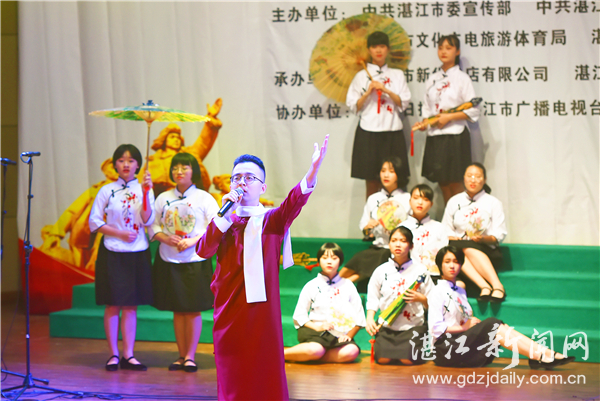 活动中,湛江的朗诵者、学生代表奉献真挚的情感、优美的朗读,以诗文为载体,通过诵、唱、演,并结合舞蹈、音乐等不同形式,多角度演绎了中华经典国学,为现场观众献上一场精彩的视听盛宴(如图,记者 刘冀城 摄),唱响了主旋律、弘扬了正能量,渲染了浓厚的阅读氛围。