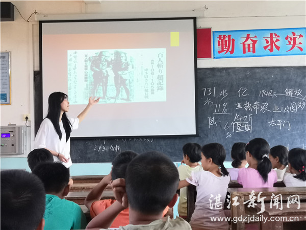 近日,广东海洋大学文学与新闻传播学院青年志愿者协会支教队的志愿者们,在坡头区官渡镇黄桐小学开展以“传诵文化经典,追忆往昔岁月”为主题的宣讲活动。活动分为两部分:一是“诗书中华——传诵文化经典”,让小朋友们领略中华文化的无限魅力;二是“勿忘国耻——追忆往昔岁月”,重温抗战历史,培养孩子们的爱国主义情怀。