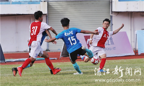 7月28日下午,2019年广东省足球协会杯继续打响。湛江英杰首轮比赛第一回合比赛在霞山体育场迎战阳江足协队(如图,记者张锋锋摄)。湛江英杰队凭借上半场43分钟的一记点球,最终1:0小胜对手。