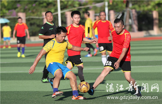 7月28日下午,湛江日报社庆祝中华人民共和国成立70周年暨职工七人制足球联赛打响(如图,记者李忠 摄)。活动旨在丰富报社职工的业余文化生活,提升员工参加体育锻炼的热情,进一步展现报社员工良好的精神面貌。
