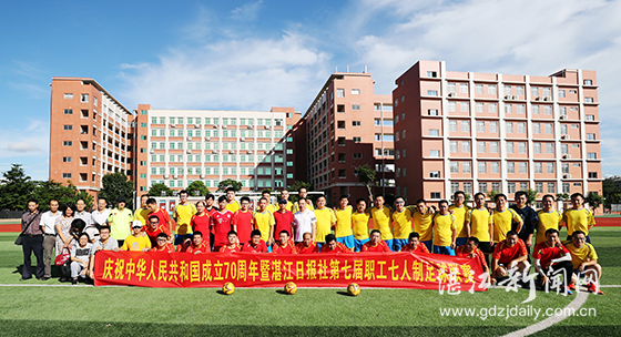 7月28日下午,湛江日报社庆祝中华人民共和国成立70周年暨职工七人制足球联赛在市初级实验中学足球场打响。