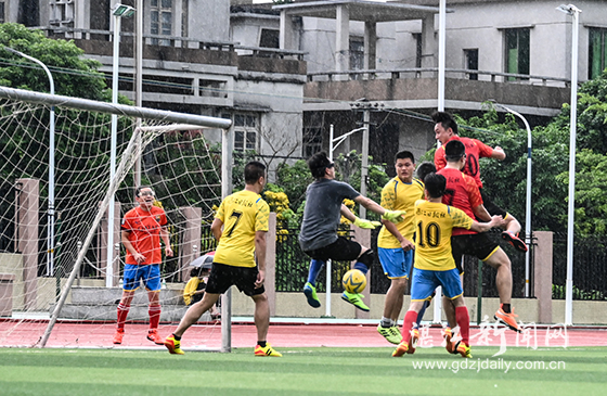 日报晚报支部联队对阵行政经营支部联队的精彩比赛现场。