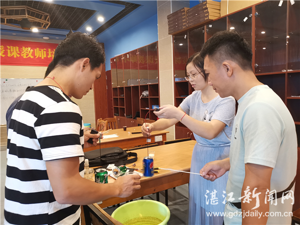 近日,湛江市送科技制作课到边远农村中小学校活动的授课教师和大学生科普志愿者招募工作顺利完成。连日来,他们在岭南师范学院进行了集体备课和培训,同时要亲手制作水火箭和棉花糖机等,并学习相关理论知识。 据悉,由市科协、市教育局、市科技局、团市委等单位联办的2019年湛江市送科技制作课到边远农村中小学校活动即将在我市拉开序幕,活动将持续到今年底。授课教师和大学生科普志愿者将会分赴我市各地边远农村中小学校,为孩子们提供精彩的课程。