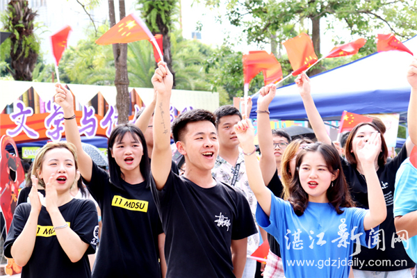 据介绍,今年是中华人民共和国成立70周年,湛江各高校迎接新生的最大亮点是突出爱国、爱校主题,让广大新生真切感受到大家庭的温暖和积极向上的校园文化氛围,同时也把迎新报到现场,变成新生走进大学校园的第一堂生动思政课和爱国主义教育课。