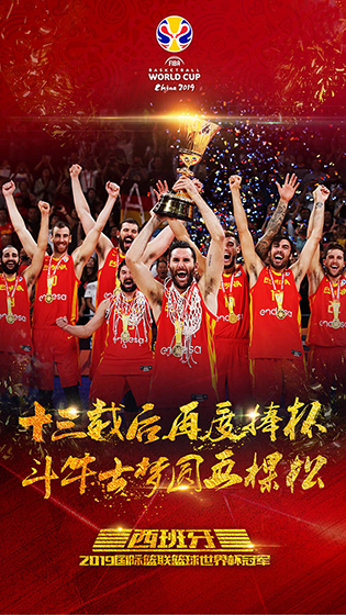 海报:2019国际篮联篮球世界杯决赛——十三载后再度捧杯 斗牛士梦圆五棵松 新华社发
