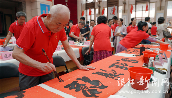 现场挥毫,祝福祖国。记者 陈振园 摄