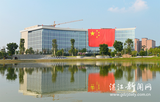 为庆祝中华人民共和国成立70周年,国庆期间,广东文理职业学院校道两侧整齐悬挂的五星红旗迎风招展,沿着校道远远望去,悬挂在图书馆墙面的巨幅五星红旗,在阳光的映照下格外鲜艳夺目,从高空俯视巨幅“国旗红”,美得令人为之惊叹。