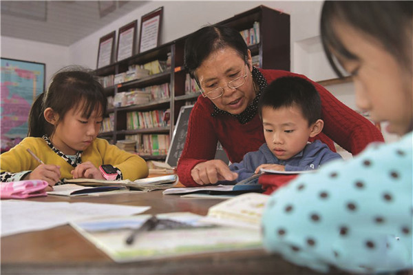 在江西省南昌市南昌县八一乡院前村,万美兰辅导孩子们做作业。 新华社记者 彭昭之 摄