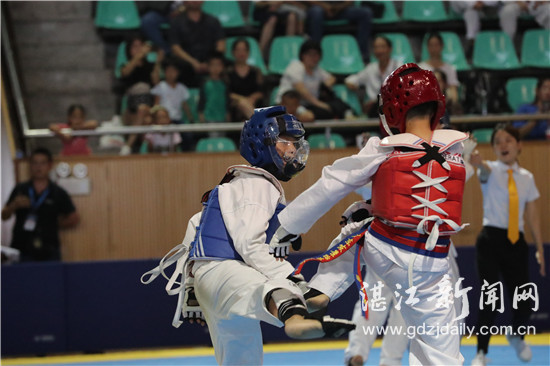 11月3日,由广东省跆拳道协会、广西壮族自治区跆拳道协会、海南省体育总会主办,湛江市跆拳道协会承办的“2019年粤桂琼跆拳道公开赛暨2019年广东省跆拳道联赛湛江站”在湛江市体育中心体育馆举行(如图,记者林石湛 摄)。来自广东、广西、海南等地的多支队伍参赛,近500名男女运动员踊跃参与。赛事共设竞技项目、品势项目、跆拳道舞、电子竞速等比赛项目。