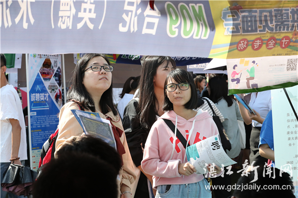 本次招聘会由广东海洋大学寸金学院学生工作部主办。招聘会共有225家企业进场,其中有广州、深圳、佛山等地多家企业参会,提供就业岗位上千个,岗位涵盖信息、生物、地产、教育、能源、制造、新媒体等行业领域,招聘会吸引了4000多名毕业生进场应聘。从当天的招聘现场看,物流、销售、人资管理等社会服务业受到年轻大学生的热捧。相较于普通求职人员注重工资待遇、福利,高校毕业生更看重工作环境以及今后的发展前景。