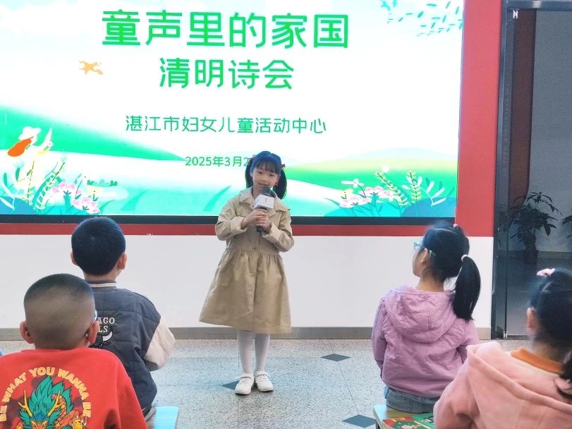 近日,湛江市妇女儿童活动中心举办“童声里的家国”清明诗会,儿童们齐聚一堂,通过诵读经典诗词,在盎然春意中传承红色基因,厚植家国情怀。