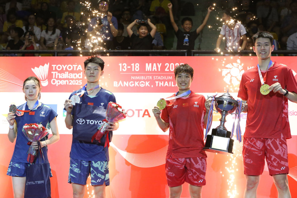 新华社曼谷5月18日电(记者林昊)在泰国曼谷举行的2025年泰国羽毛球公开赛18日进行了各单项决赛。中国队陈雨菲摘得女单金牌;混双决赛中,冯彦哲/黄东萍战胜队友高家炫/吴梦莹夺冠。