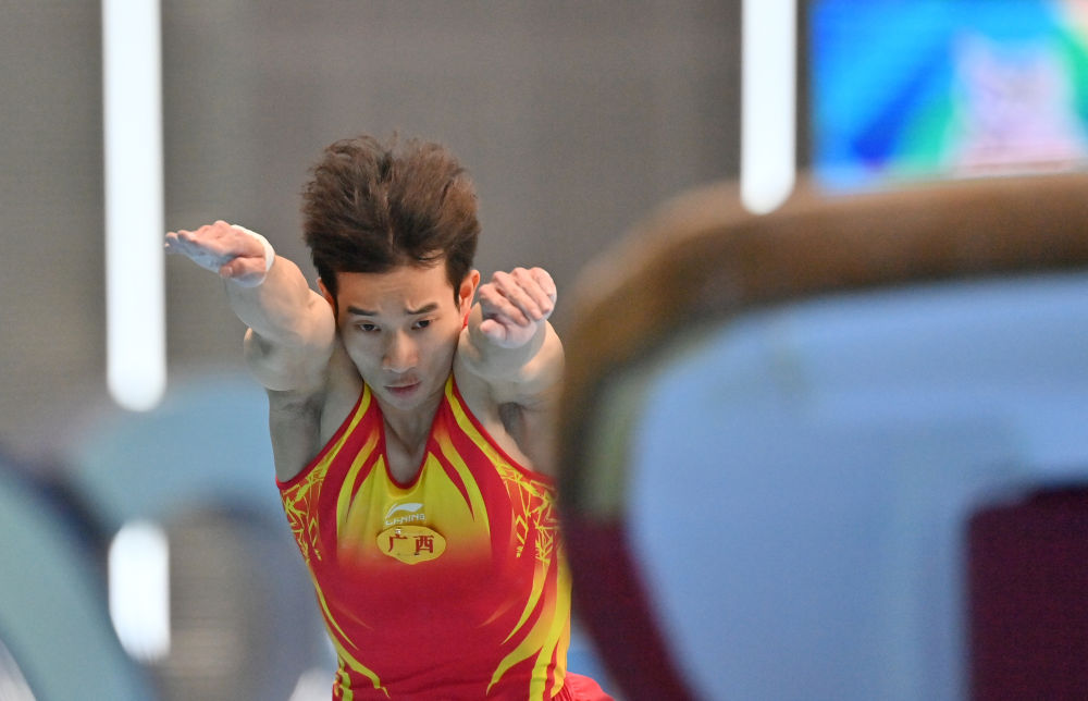 在本届体操全锦赛前七日的比赛中,广西队尚未有金牌进账。最后一个比赛日,在首先进行的男子跳马比赛中,黄明淇状态极佳。他延续在预赛中的优异表现,第一跳就收获了全场最高分14.800分,最终以两跳平均分14.566分的成绩将优势保持到了最后。