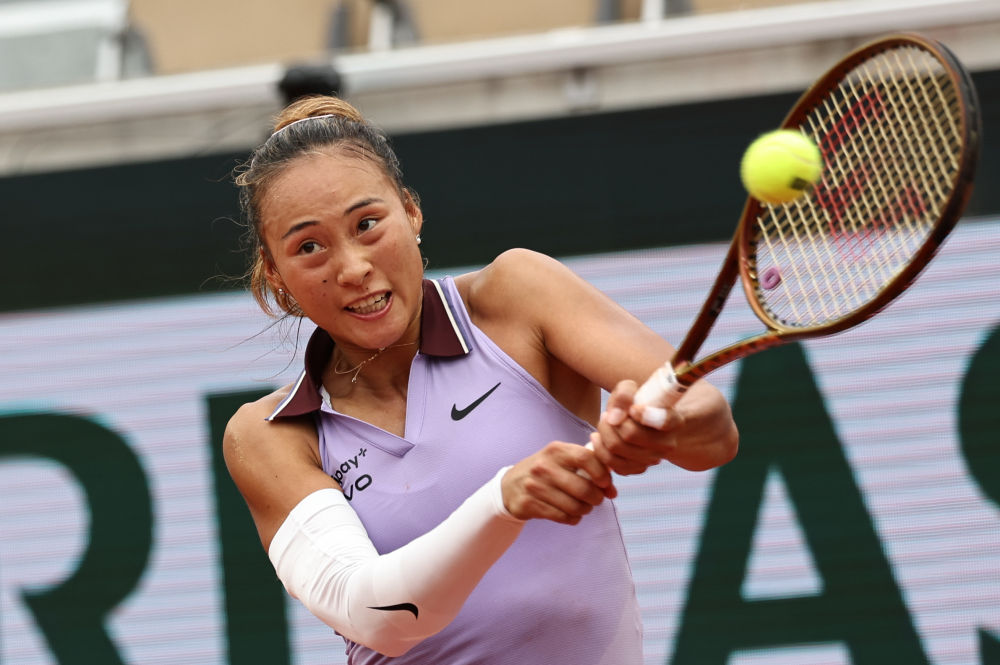 郑钦文在比赛中回球。新华社记者 李京 摄