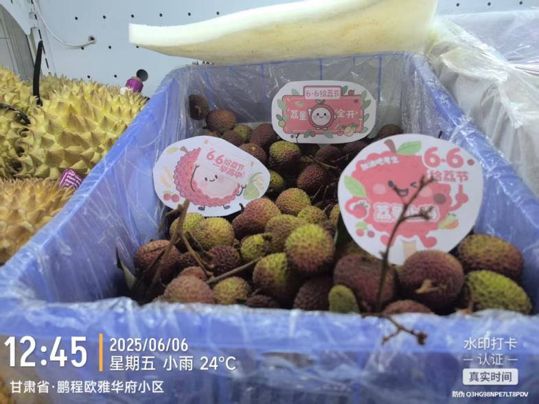 在北方,北京市丰台区乐华梅兰水果店内,广东荔枝被摆放在最显眼的位置,吸引着众多顾客驻足选购。甘肃省兰州市安宁区的果果家、宜居园、李鲜生、首杨水果等店铺,也精心布置了“66给荔节”的宣传海报,让顾客在品尝荔枝美味的同时,感受到浓厚的节日氛围。河北省沧州市、石家庄、任丘市,河南省郑州市、新乡市,山东省济南市、潍坊市,山西省太原市等地的水果店同样热闹非凡,广东荔枝凭借其鲜嫩多汁、清甜可口的品质,赢得了当地消费者的喜爱。