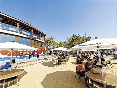 游人乐享阳光沙滩。 记者欧阳泽 摄