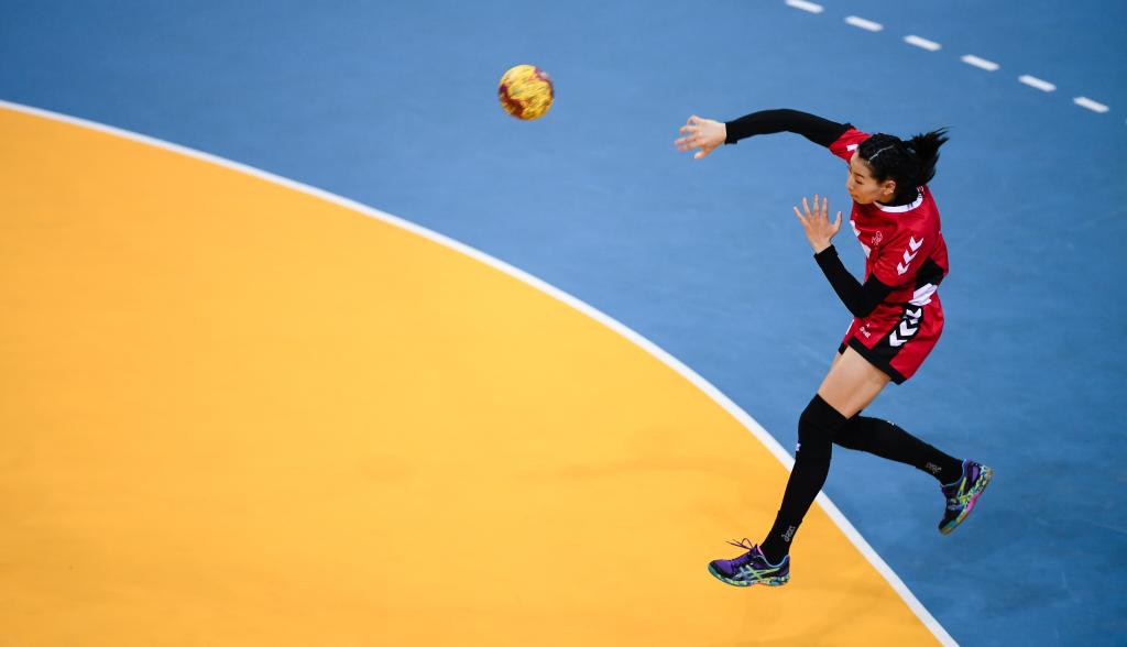 2017年9月1日,安徽队选手杜机娟在第十三届全运会女子手球小组赛A组比赛中。新华社记者 李响 摄