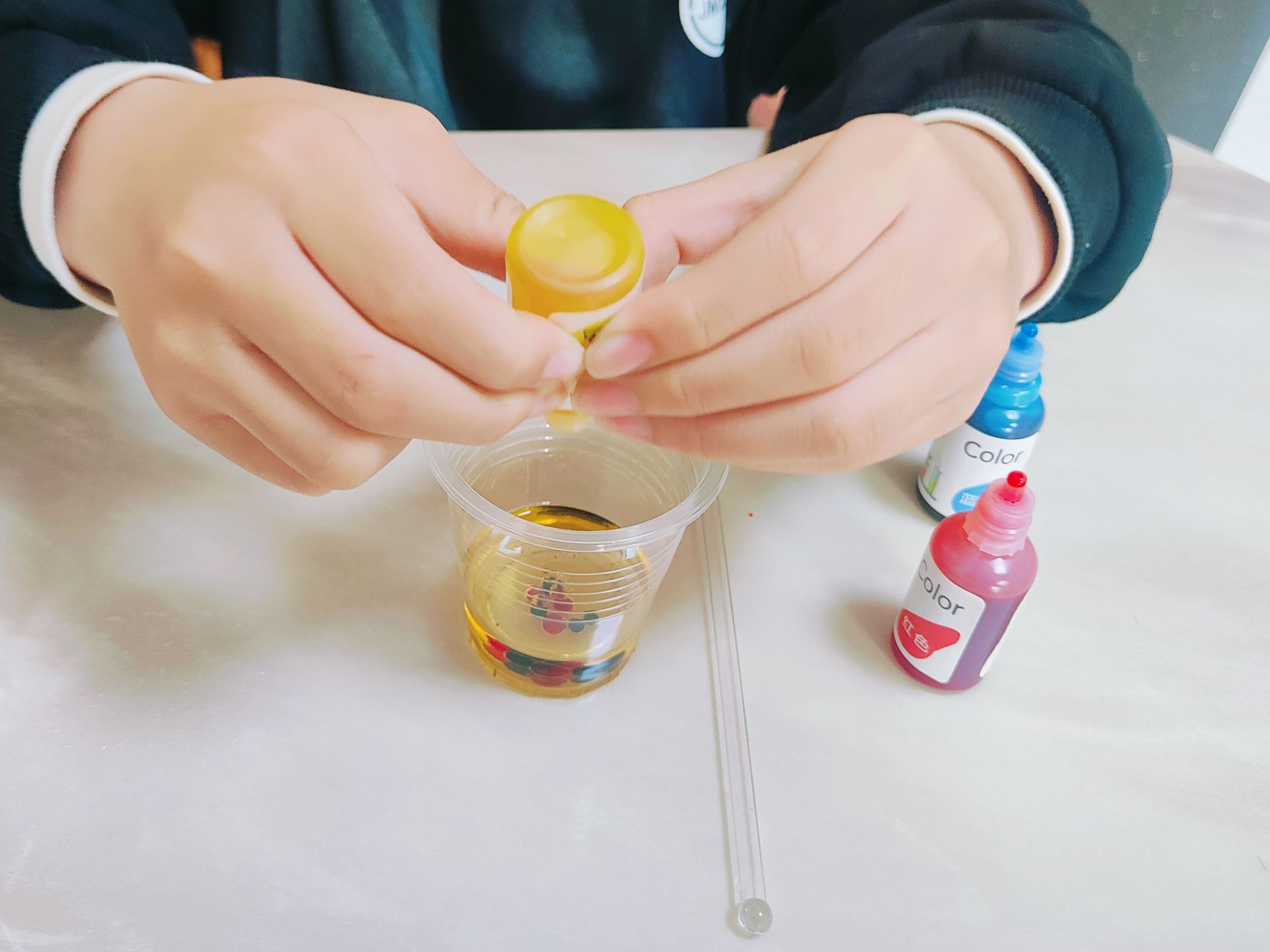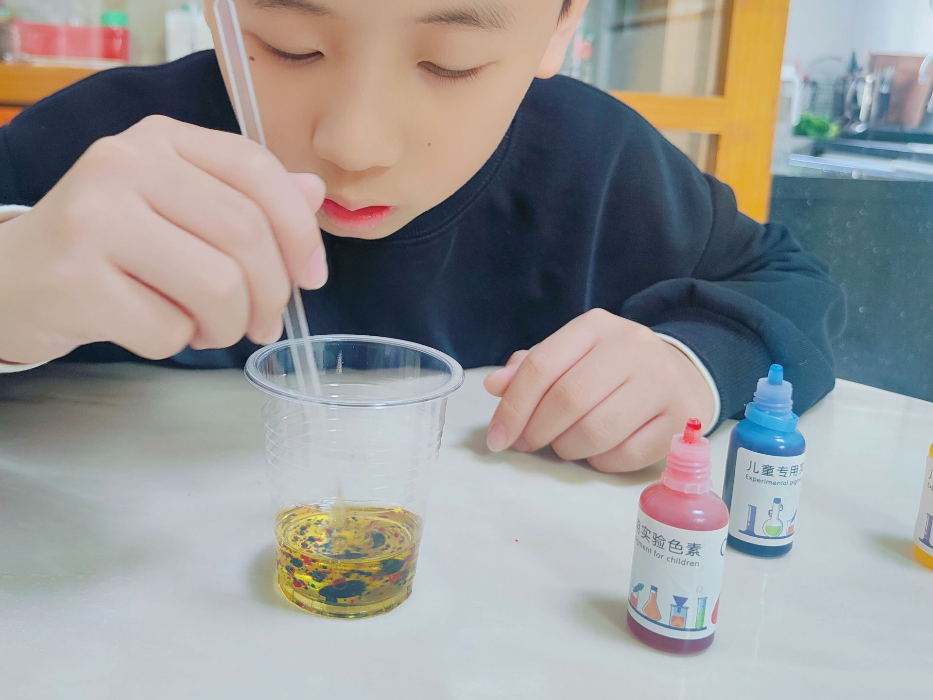 原来水和油,是这么有趣!同学们是不是也想尝试一下呢?周末的时候,可以动手做起来哦!