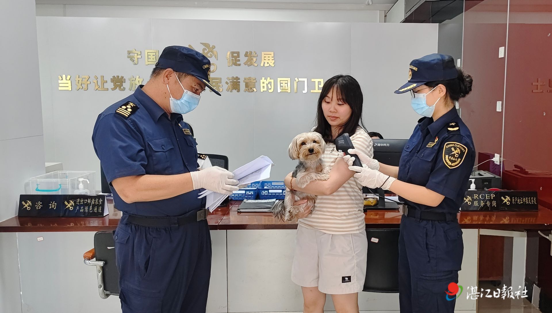 据了解,智慧动植检“携带宠物出境检疫”模块已在今年4月全国推广应用,是智慧海关建设的项目成果之一。湛江海关积极做好模块授权、使用培训、多渠道开展针对性政策宣贯等工作,在得知朱女士诉求后,主动靠前服务,系统梳理目的地国家及地区宠物检疫要求,提前告知申请人按要求做好疫苗接种、芯片植入、体内外驱虫等相关手续。在海关监管服务下,宠物主人通过线上申请、线下“即查检即出证”顺利获取证书。