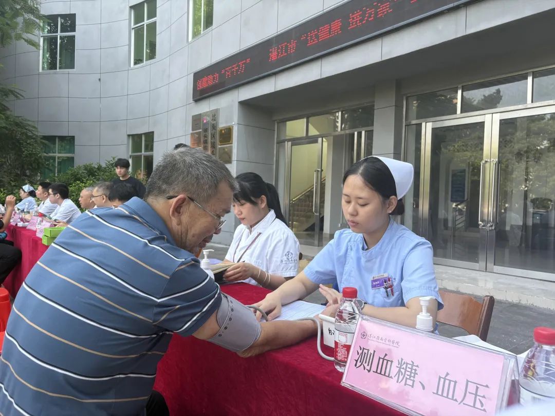 在坡头镇新时代文明实践所文体广场上,来自湛江岭南骨科医院的10多名专业医师为村民群众进行中医把脉问诊,让大家了解自身的身体状况;为学生进行专业的骨密度测量,提供骨科专科健康咨询;为中老年群众进行肠癌筛查、血压监测,提供个性化的健康建议。中医师还在现场进行推拿、正骨,帮助群众缓解身体不适症状,同时开展针灸、艾灸等免费中医传统疗法体验,让大家亲身感受中医药疗法的神奇效果。