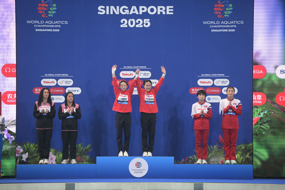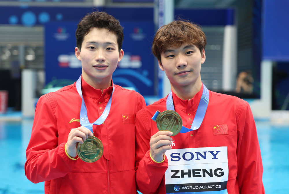 新华社新加坡7月28日电(记者岳晨星、王子江)2025年世界游泳锦标赛28日在新加坡进行跳水项目男子双人三米板和女子双人10米台的决赛,王宗源/郑九源、陈芋汐/掌敏洁分别夺得冠军,为中国队再添两金。