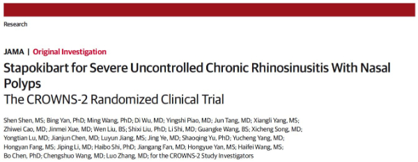 8月18日,首都医科大学附属北京同仁医院张罗教授与王成硕教授作为共同通讯作者,在国际期刊《美国医学会杂志》(JAMA)发表突破性研究成果 —— 康悦达(司普奇拜单抗)治疗严重未控制的慢性鼻窦炎伴鼻息肉(CRSwNP)Ⅲ期临床研究(CROWNS-2)结果。