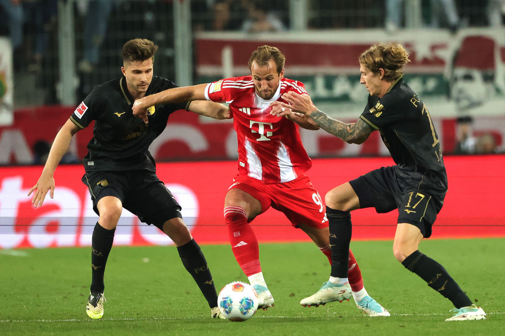 8月30日,拜仁慕尼黑队球员凯恩(中)在比赛中突破。新华社发(菲利普·鲁伊兹摄)