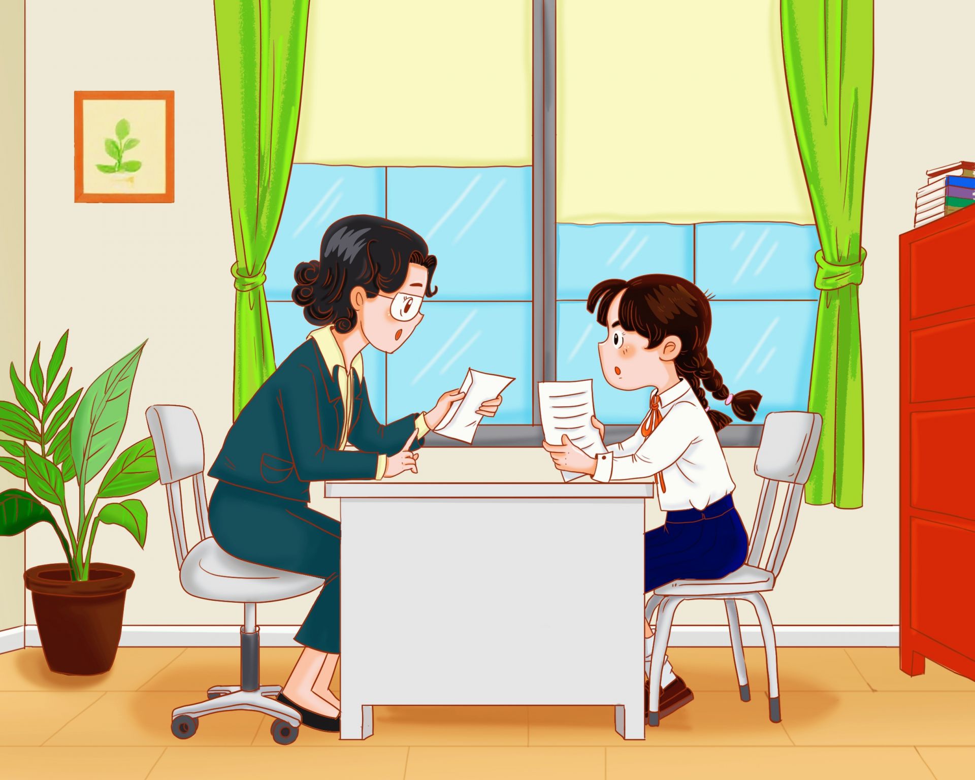 终于等到下课铃响了,苏式如获大赦,正想跑出教室,不料闫老师却说:“其他人下课休息,苏式跟我去一下办公室!”