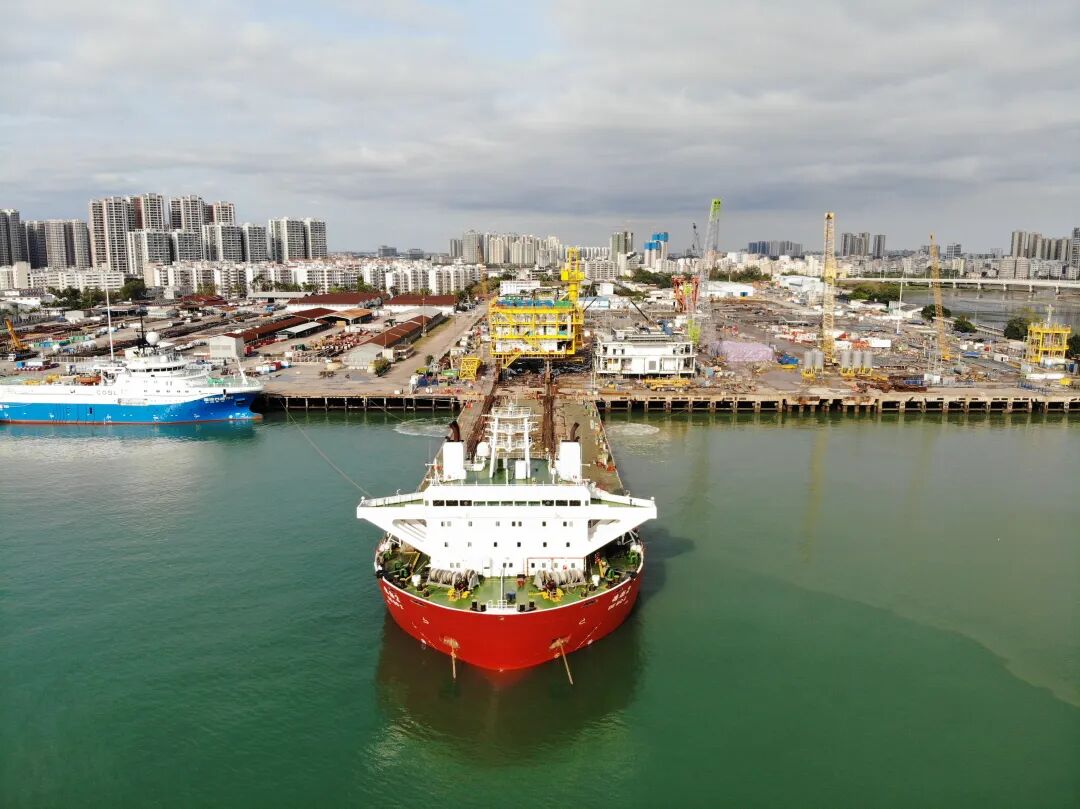 乌石23-5平台在南油海工码头拖航出海。陈涛 摄
