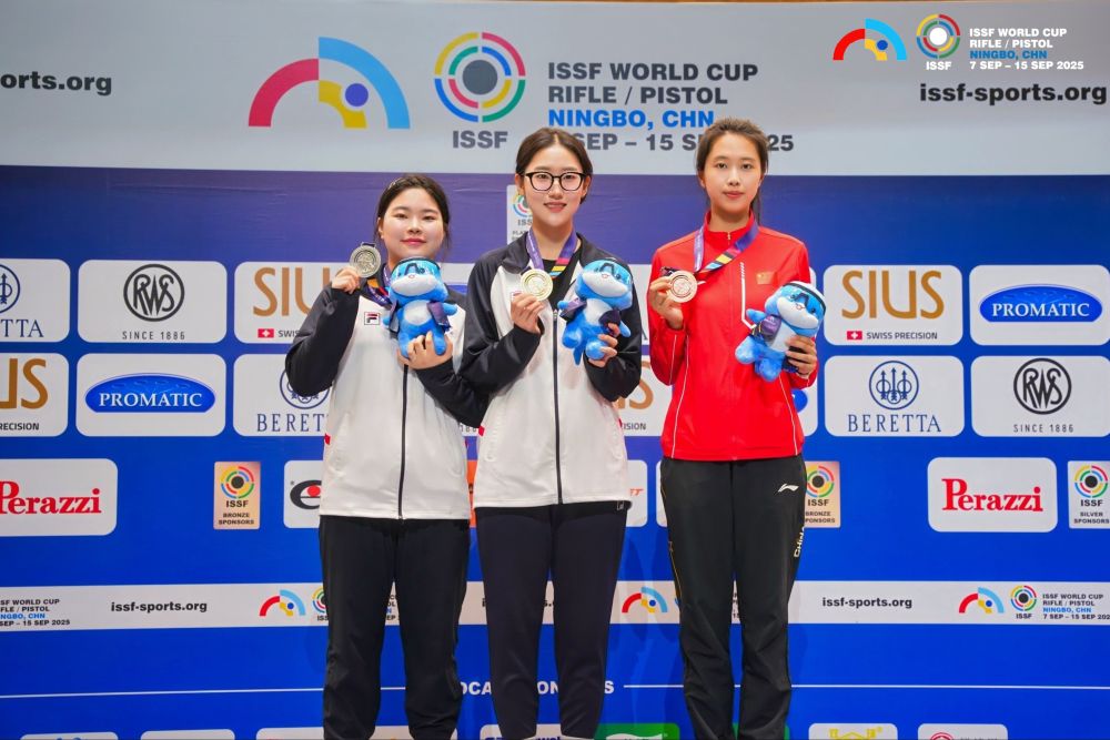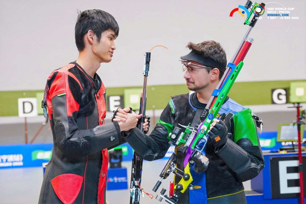 新华社宁波9月11日电(记者牛梦彤、王梦)射击世界杯宁波站(步手枪)11日继续进行。在男子10米气步枪项目中,意大利选手萨拉佐发挥神勇,以255环打破该项目决赛世界纪录,力压东道主、奥运“双冠王”盛李豪夺得金牌。女子25米运动手枪赛场上,中国选手肖嘉芮萱摘得铜牌。