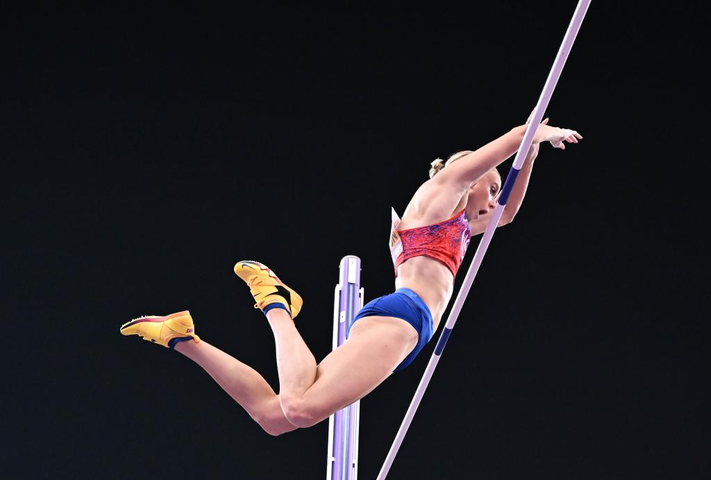 9月17日,美国选手穆恩在女子撑杆跳高决赛中试跳。新华社记者 宋彦桦 摄