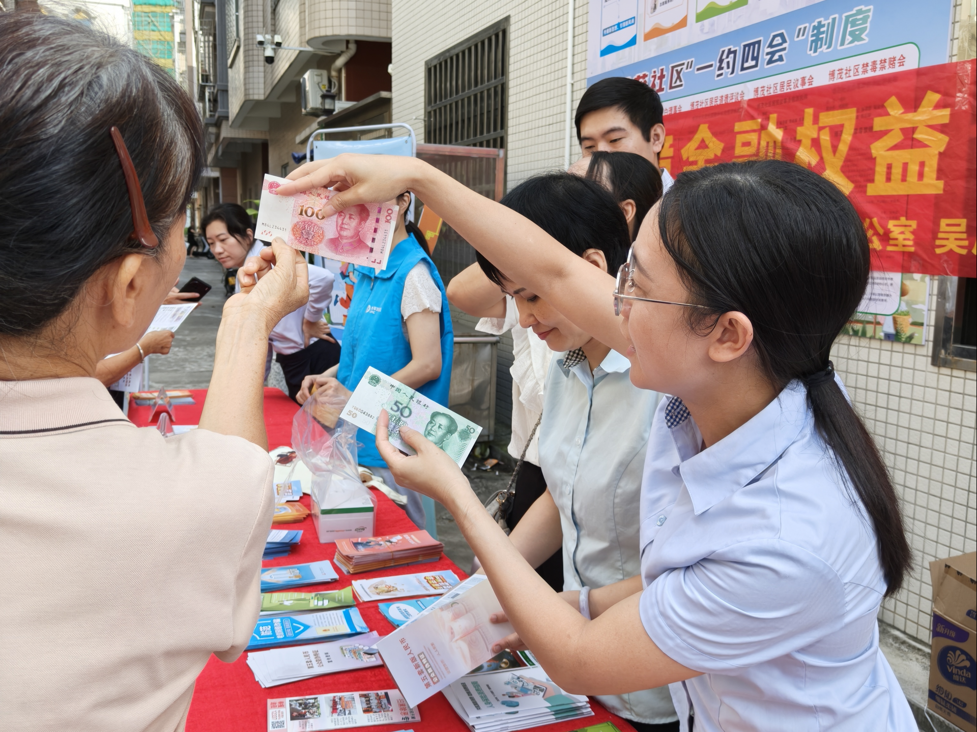 贴近生活,实现城乡全覆盖。该行聚焦社区、农村群众需求,将金融知识送到“家门口”。工作人员走进博茂社区、康顺社区等10余个居民社区以及雷州市白沙镇曾宅村等农村区域,通过发放图文手册、现场模拟诈骗场景、设置“金融知识小课堂”互动专区等形式,向居民群众普及反假币、个人信息保护、防范电信诈骗、理性选择金融产品等内容,手把手教居民识别假币、防范诈骗,解答居民关于退休金理财、社保卡使用等疑问100余条,有效丰富居民金融知识,提升金融风险防范意识。