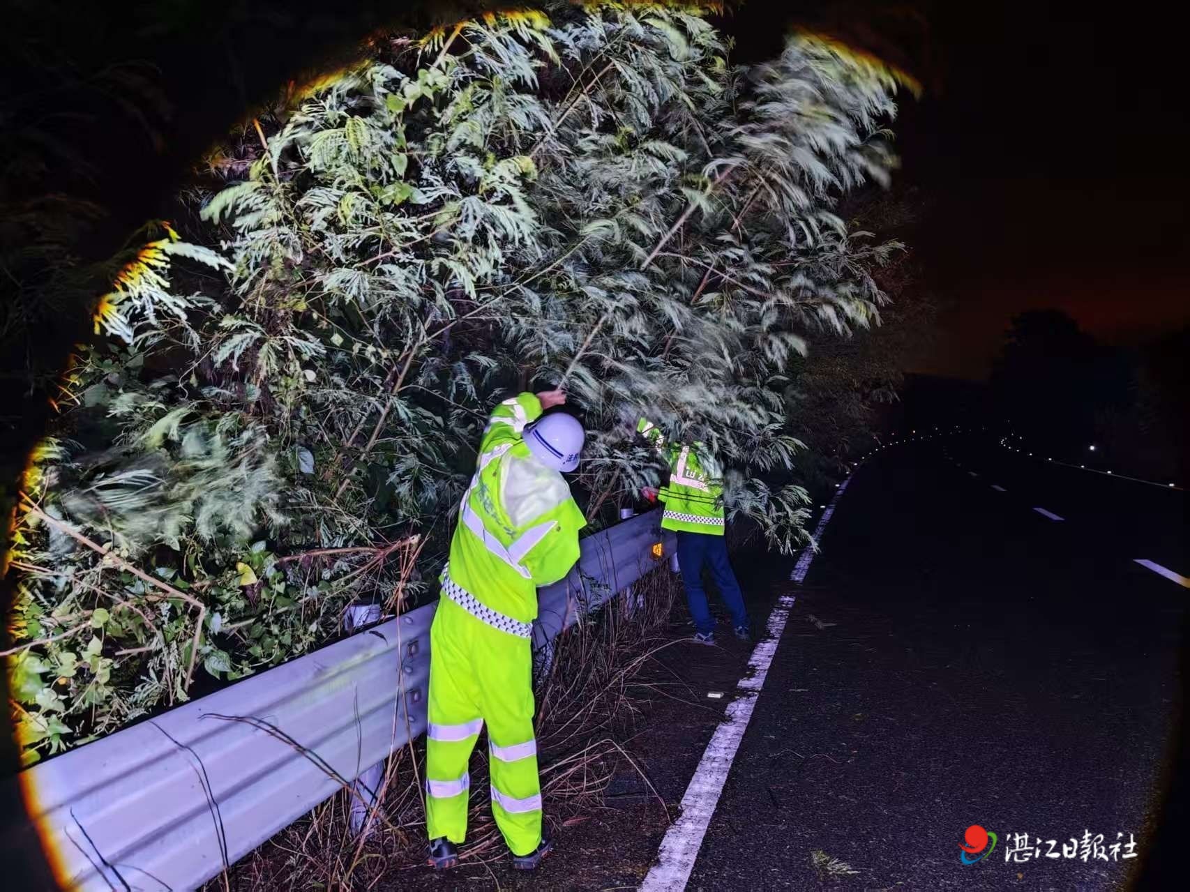 台风过后,玉湛高速路面出现树木倒伏、杂物堆积问题。25日凌晨2时20分,应急队伍在调度下,携油锯、装载机等设备赶赴现场抢通。经过近2小时奋战,在凌晨4时前,倒伏树木、杂物被全部清理,积水基本排除,道路设施无安全隐患,较当地交警部门计划解除交通管制的时间,提前几个小时具备了通车条件。