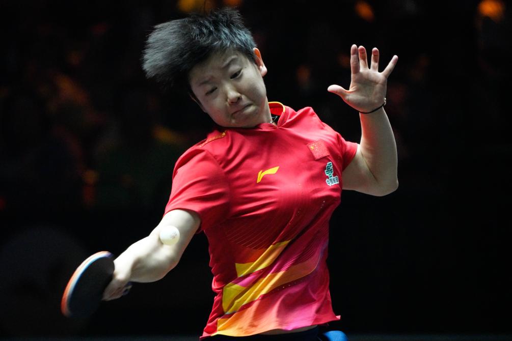 9月28日,孙颖莎在比赛中回球。新华社记者 谢晗 摄