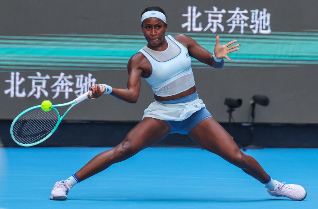 9月28日,高芙在比赛中回球。新华社发(马子涵摄)