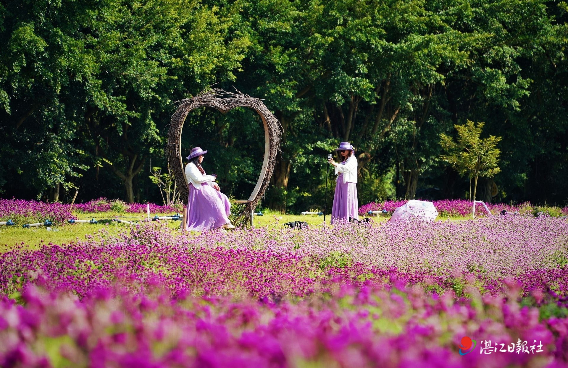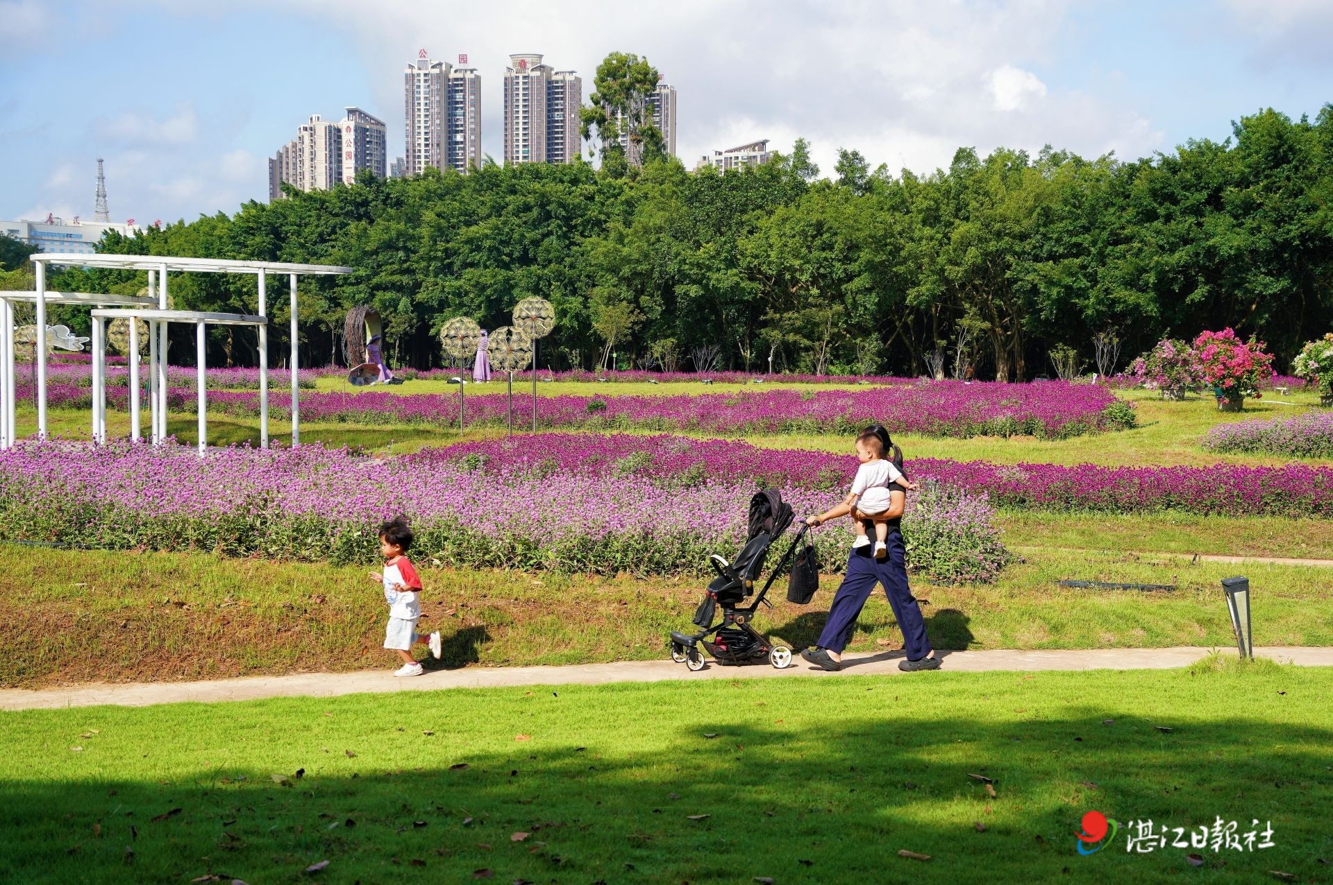 10月1日,湛江南国热带花园国庆主题花海迎来客流高峰。千日紫、千日粉等花卉绚烂绽放,与园内繁茂绿植、林间飞鸟、花丛彩蝶相映成趣,市民或赏花拍照,或林间漫步。