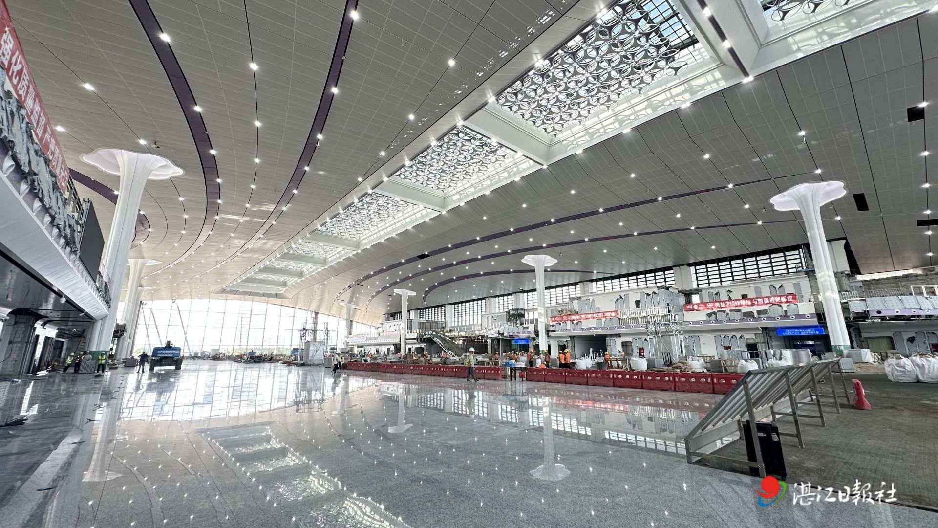 记者在湛江北站站房内看到,施工人员或在高空作业,或在地面铺设地砖,各环节衔接紧密、有条不紊。据施工负责人介绍,目前,站房主体结构完成100%,站台雨棚装饰装修完成100%,进入联调联试阶段。站房室内装饰装修完成90%,站房室外装饰装修完成85%。预计10月底完成站房装饰装修工作并开展二次静态验收,12月底具备开通条件。