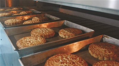 新鲜出炉的大月饼。